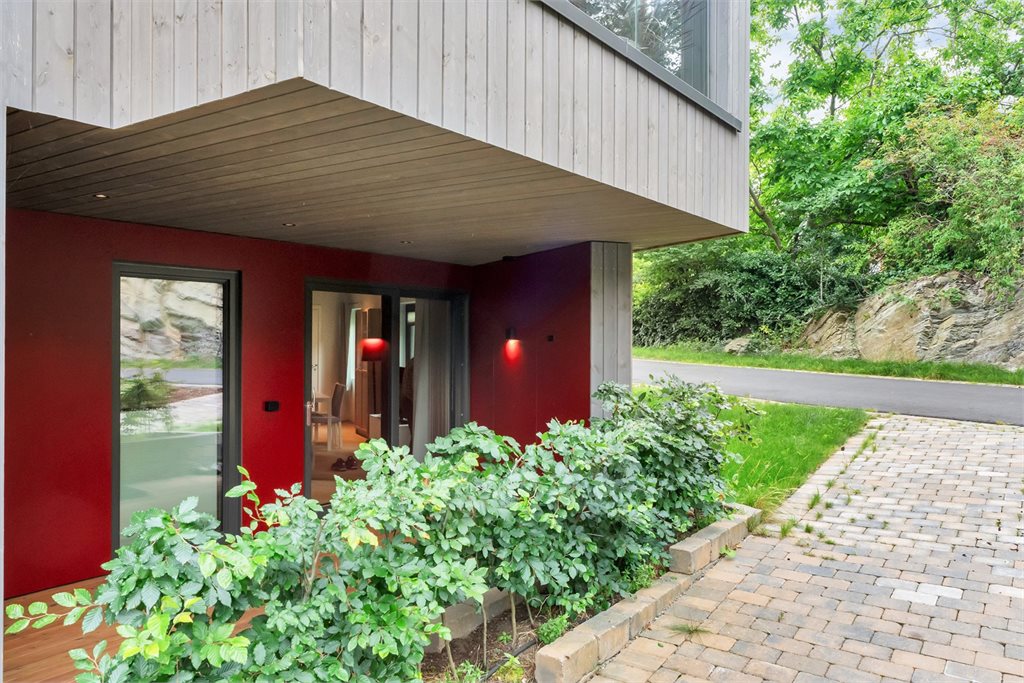 Fellestomten er flott opparbeidet med gangveier, beplantning og lekearealer. Tomten har gode solforhold.Parkering